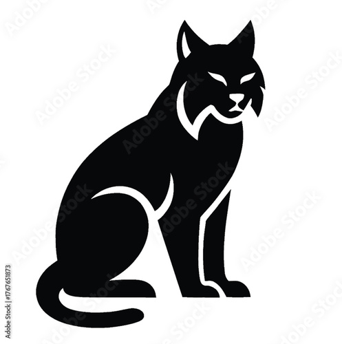 lynx, cat, silhouette, black, animal, wildlife, predator, felino, big, icon, logotype, graphic, illustration, drawing, vector, stylised, alert, sitting, ear, sharp, creature, mammal, wild, isolated, white, background