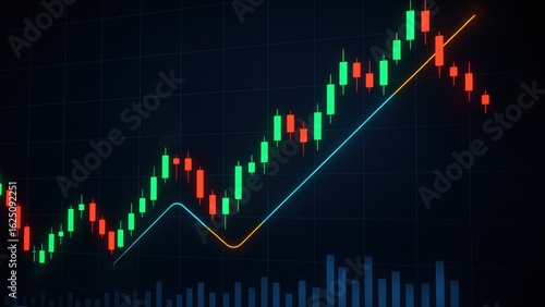 candleholder, chart, trading, virtual, arrow, success, finance, datum, glowing, interface, trend, grid, upward, technology, market, dark, investment, economy, dashboard, rose colored, digital, line, movement, abstract, futuristic, motion, stock, graph, signal, business, rise, loop, direction, visualisation, performance, financial, bar