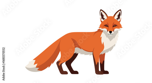 Stylized Vector Illustration of a Red Fox Standing Alert on a Plain White Background Depicted in a Simple Flat Design