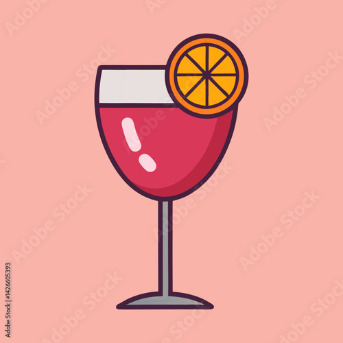 Stylized Wine Glass with Red Wine and Orange Slice Garnish Illustration
