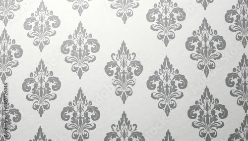Subtle grayscale damask pattern with soft, repeating leaf motifs , pattern, seamless