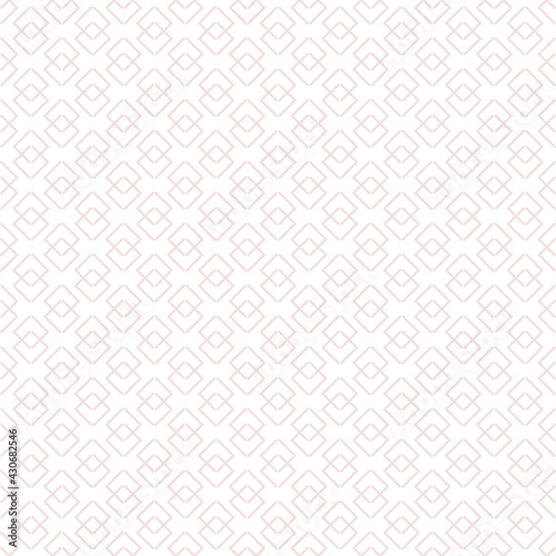 Subtle vector abstract geometric pattern with linear shapes, small rhombuses, diamonds. Stylish minimal light pink and white geo texture. Modern minimalist background. Repeat design for decor, textile