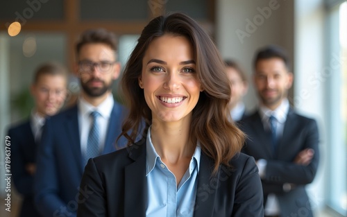 Successful Businesswoman Standing In Front Of Business Team In Office. High quality