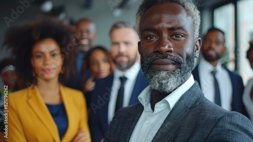 Successful group of multiethnic entrepreneurs and businessmen achieving goals in corporate office.