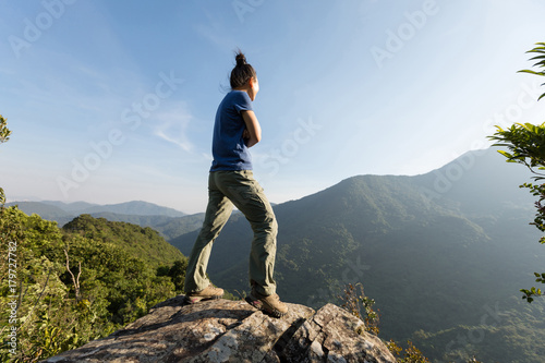 successful young woman enjoy the view on cliff's edge