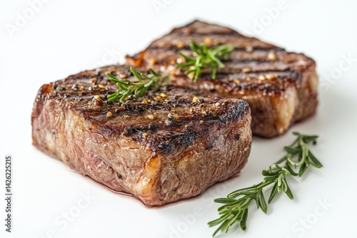 Succulent grilled steak garnished with fresh herbs ready to be served for a delightful meal