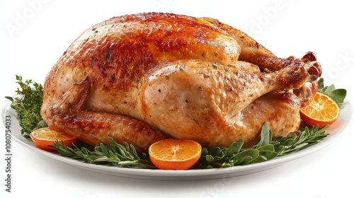 Succulent Roast Turkey Garnished with Citrus and Herbs for Festive Celebrations