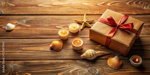silhouette, birthday, gift, summer, present, seashell, candle, tealight, wood texture, rustic, gift box, topview, copy space, celebration, beach, ocean, birthday gift, party, decoration, vintage, natural, candlelight, romantic, holiday, occasion, gift wrapping