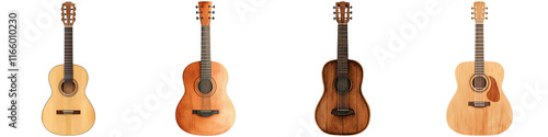 Summer festival music and games, A collection of acoustic guitars showcasing various wood finishes and designs, highlighting their craftsmanship and aesthetic appeal.
