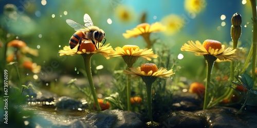 Summer flowering bee. Generative Ai.