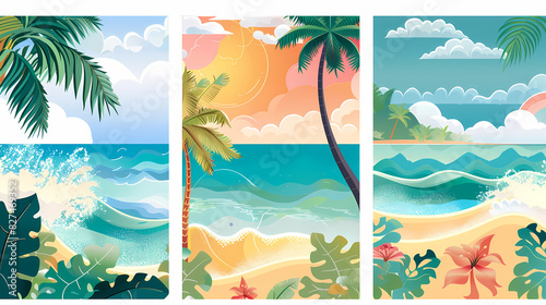 beach, vacation, tropical, summer, sea, landscape, travel, holiday, vector, umbrella, sun, relax, ocean, background, rest, illustration, sunny, coast, image, tour tourism, sand, banner, sky, paradise, graphic, nature, seascape, island, cartoon, beautiful, trip, water, shore, wave, exotic, day, natural, cocktail, panorama, drawing, no people, rock, horizontal, blue, horizon, heaven, resort, colours
