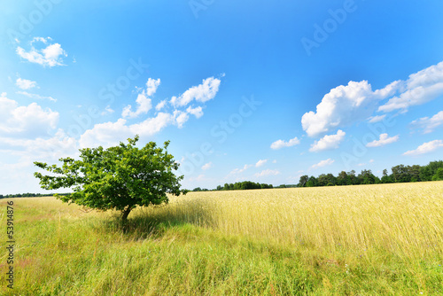 field, tree, grass, green, farm, wind, blue, sky, oak, sunlight, meadow, clear, spring, cloud, lawn, view, panoramic, horizon, crop, wheat, scenery, summer, outside, lea, countryside, season, over, farming, vista, heavenly, cloudy, plain, pasture, colourful, weather, plant, beauty, rural, outdoors, country, beautiful, nature, land, environment, cloudscape, landscape