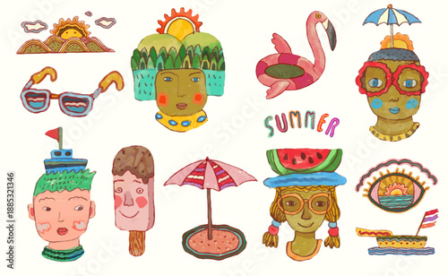 summer, travel, sea, sticker, watercolor, beach, illustration, pattern, holiday, art, artwork, cartoon, collection, concept, cute, design, doodle, drawing, exotic, face, food, fruit, fun, graphic, hawaii, ice cream, isolated, landscape, man, nature, ocean, season, set, style, tree, trendy, tropical, vacation, vector, vintage, watermelon, wave