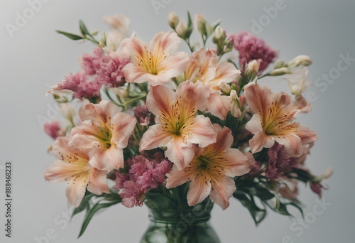 Summer season flowers bouquet made with Alstroemeria isolated on transparent background