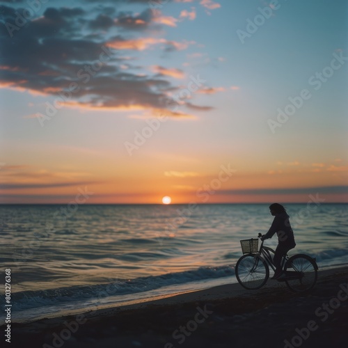 bicycle, bike, sunset, silhouette, cycling, biker, sport, bicyclist, travel, beach, biking, sky, summer, people, sun, woman, mountain, sea, sunrise, adventure, exercise, cycle, outdoors, nature, ride