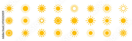 Sun icons collection. Sun logo. Yellow suns circles. Sunshine vector sign. Vector illustration
