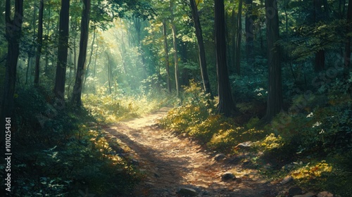 forest, path, tree, sun, light, green, leaf, sunlight, nature, wood, foliage, timberland, shadow, branch, summer, dappled, landscape, scenery, pathway, mossy, dirt, ground, canopy, lush, vibrant, beam, ray, deep, dark, bright, gold, peaceful, serene, tranquil, hidden, mystery, magical, enchanting, beauty, wonder, adventure