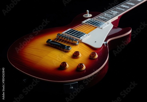 Sunburst electric guitar on black background with chrome details