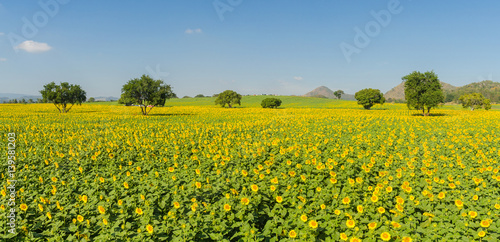 Sunflower field and blue sky in the morning