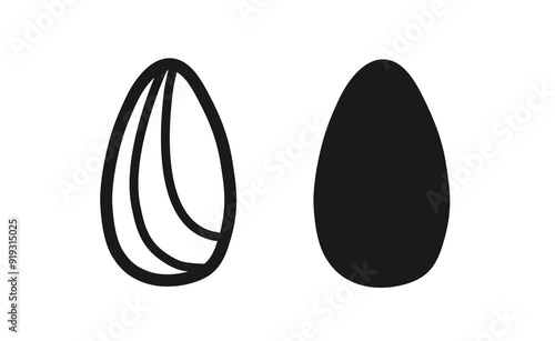 Sunflower seed peeled kernel and in shell silhouette icon. Healthy snack, plant oil design element for web, mobile, logo, decoration. Organic food. Vector illustration isolated on white background