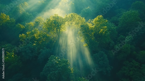 sunlight, beam, mist, forest, canopy, tree, green, nature, lush, aerial, dense, misty, morning, dawn, gold, ray, wood, foggy, emerald, vigorous, growth, ecology, ecosystem, tranquil, peaceful, majestic, environment, fresh, vibrant, light, beauty, forest, healthy, top, view