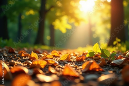 Sunlight dapples airborne wood chips, creating a hazy glow , light, shadows