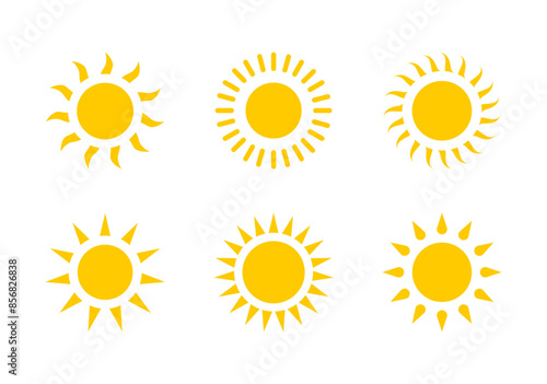 Sunlight icon set. Sunshine, sun, summer, light, heat, hot weather, solar power.