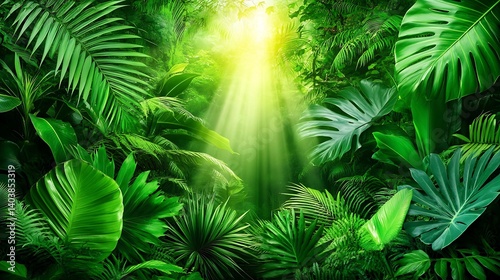 jungle, rainforest, sunlight, green, leaf, plant, tropical, nature, foliage, background, forest, tree, environment, ecology, wildlife, landscape, photo, image, picture, botanical, vegetation, growth, amazon, paradise, exuberant, lush, organic, natural, scene, view, scenic, summer, spring, flora, life, earth, earth, planet, fresh, bright, energy, calm, peace