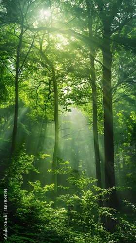 forest, nature, tree, tree, landscape, sun, green, path, sunlight, wood, fog, misty, mist, light, summer, spring, autumn, foliage, park, wood, timberland, environment, foggy, leaf, jungle