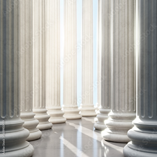 column, pillar, marble, classical, architecture, light, shadow, colonnade, ancient, greek, roman, temple, building, structure, interior, hall, row, perspective, white, bright, sun, floor, stone, history, art, antique, old, heritage, museum, palace, court, order, symmetry, pattern, detail, fluted, footed, support, strength, grand, majestic, elegant, beautiful, background, corridor, paseo, render, three-dimensional, template