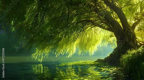 tree branch, water reflection, green leaf, tree trunk, water surface, river bank, natural beauty, tranquil scene, riverside
