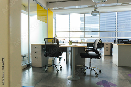 architecture, bright, business, chair, clean, collaboration, colleague, commercial, contemporary, corporate, creative, daylight, desk, empty, glasses, interior, latin, meeting, minimal, office, organised, partition, productivity, professional, window, workplace, workspace, young