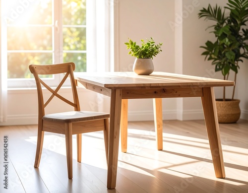sunlight, dining, table, chair, wood, simple, modern, clean, interior, light, room, home, cosy, natural, warm, greenery, plant, decor, minimalist, fresh, bright, space, rustic, wooden, empty, roomy, design
