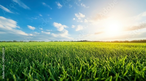 Sunlit green grass field nature landscape outdoors scenic viewpoint serenity and growth concept