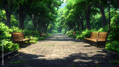 park, pathway, bench, tree, green, leaf, summer, sunlight, nature, landscape, garden, scenery, paseo, path, road, lane, alley, street, avenue, shadow, light, day, bright, fresh, calm, peaceful, relaxing, tranquil, serene, quiet, beautiful, scenic, majestic, idylli, lovely, pleasant, charming, inviting, comfortable, cosy, foliage, vegetation, plant, flower, bush, shrub