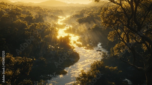 river, forest, sun, light, nature, landscape, scenic, tree, water, gold, morning, sunrise, sunset, ray, tranquil, peaceful, calm, serene, wilderness, jungle, foliage, greenery, vibrant, gold, sunlight, mist, fog, view, aerial, overhead, panorama, idylli, beautiful, amazing, stunning, picturesque, remote, untouched, pristine, environment, ecology, ecosystem, adventure, exploration