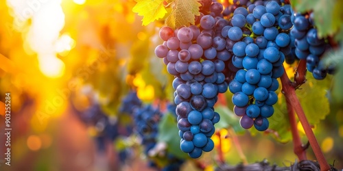 Sunlit Vineyard with Clusters of Ripe Grapes