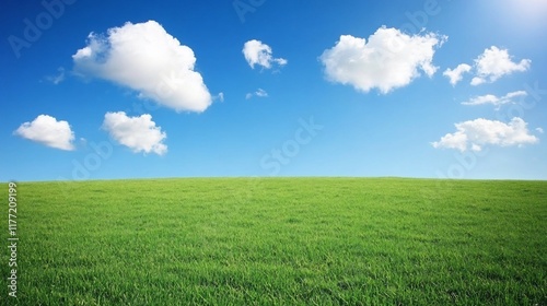 sky, cloud, blue, green, field, grass, meadow, landscape, nature, summer, sun, day, bright, horizon, scenic, view, beautiful, serene, tranquil, peaceful, calm, relaxing, open, huge, roomy, fresh, clean, vibrant, lush, rolling, hill, pasture, farmland, ecology, environment, earth, planet, background, image, photo, picture, scene, wallpaper, illustration