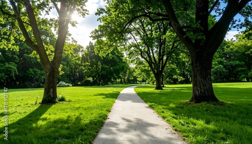park, path, tree, sun, grass, green, nature, summer, outdoors, landscape, scenic, daylight, paseo, lush, vibrant, shadow, light, open, peaceful, tranquil