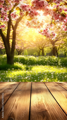 Sunny Spring Cherry Blossom Garden Table
