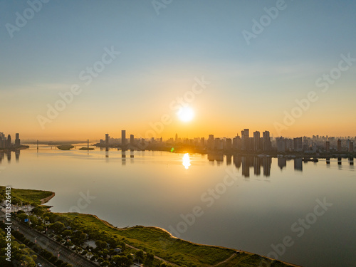Sunrise City Skyline Aerial Photography
