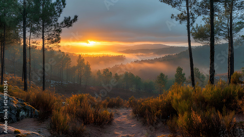 sunrise, forest, vale, misty, hiking, trail, sunset, nature, landscape, mountain, fog, tree, pine, dawn, scenery, outdoors, wood, path, view, panorama, autumn, morning, light, gold, sun, sky, cloud, hill, travel, adventure, exploration, calm, peaceful, serene, beautiful, amazing, breathtaking, spectacular, marvellously, stunning, tranquil, relaxing, scenic, vista