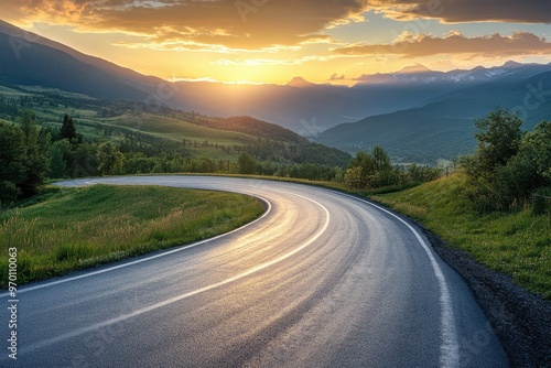 road, curve, green, hill, scenic, beautiful, siam, morning, light, sunset, background, sky, summer, travel, nature, tree, landscape, forest, cloud, mountain, blue, environment, sunrise, natural, fog, asia, national, view