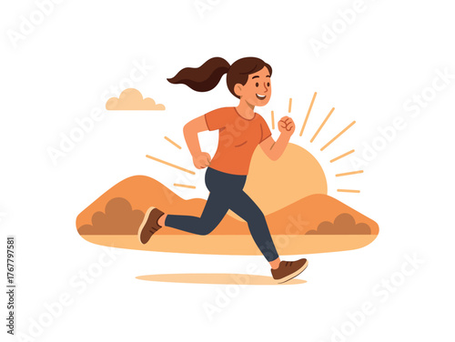 sunrise run morning energy and daily motivation flat vector illustration style isolated on white background