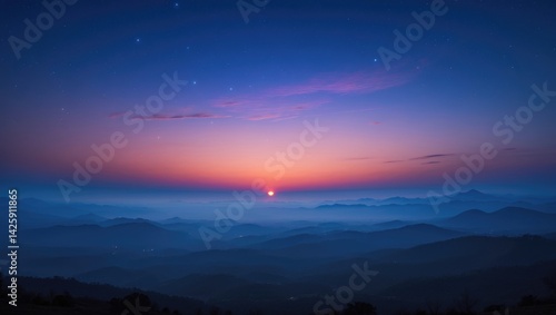 Sunrise scene with mountain and sky backdrop