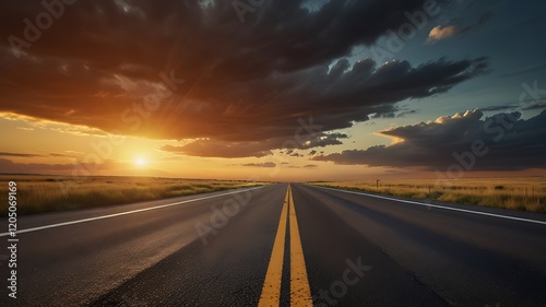 Sunset Highway: Dramatic Open Road at Golden Hour
