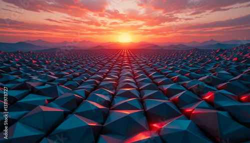 sunset, geometric, landscape, futuristic, digital, technology, cyber, artificial, intelligence, innovation, modern, abstract, pattern, system, visualisation, neon, perspective, computing, cyberspace, concept, motion, light, science fiction