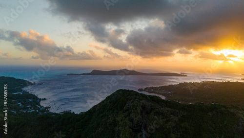 sunset, tropical, island, scenery, mountain, volcano, bora bora, cloud, cloudy, floating, up high, popular, holiday maker, destination, tour tourism, view, drone, aerial, evening, sun, dark, drama, dramatic, nature, scenic, idylli, background, postcard, travel, ocean, sea, adventure, activity, polynesian, polynesia, french polynesia, sky, water, sunrise, landscape, beach, horizon, orange, seascape, coast, beautiful, sunlight
