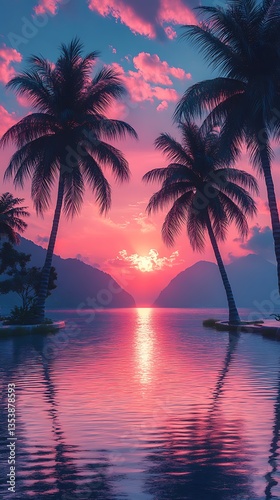 Sunset over peaceful tropical lagoon high resolution hd picture