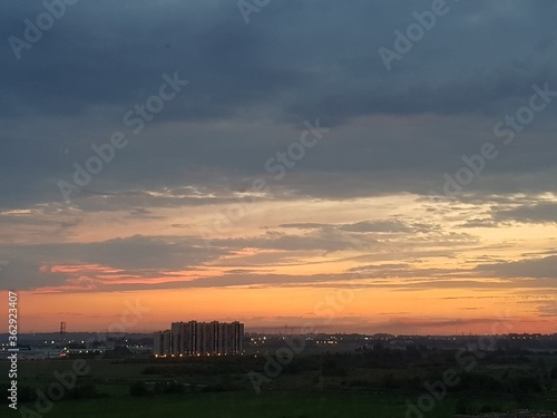 sunset, sky, cloud, sun, orange, cloud, sunrise, landscape, nature, evening, dusk, red, light, blue, panorama, beautiful, yellow, horizon, silhouette, city, view, morning, beauty